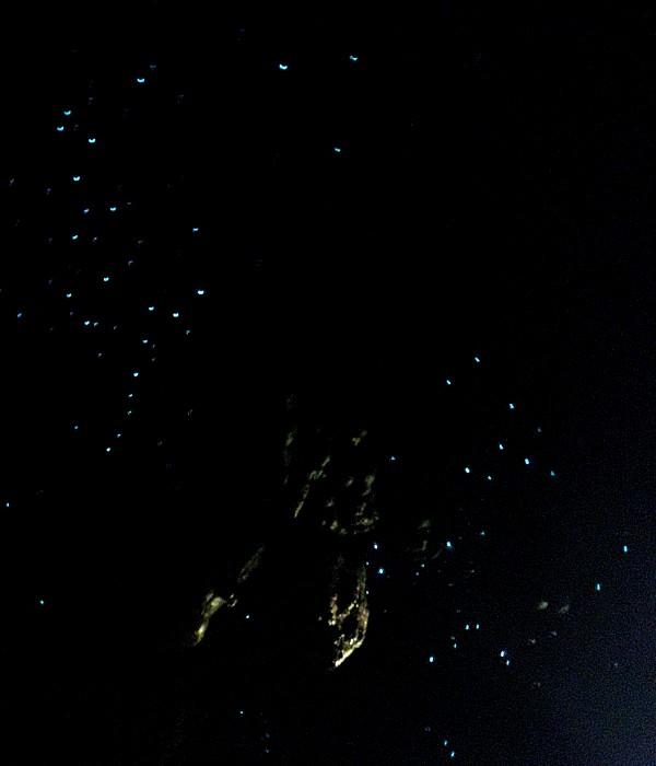 この青い光は、最初LEDライトだと思っていたのですが、土ボタルのイモムシらしいです^_^