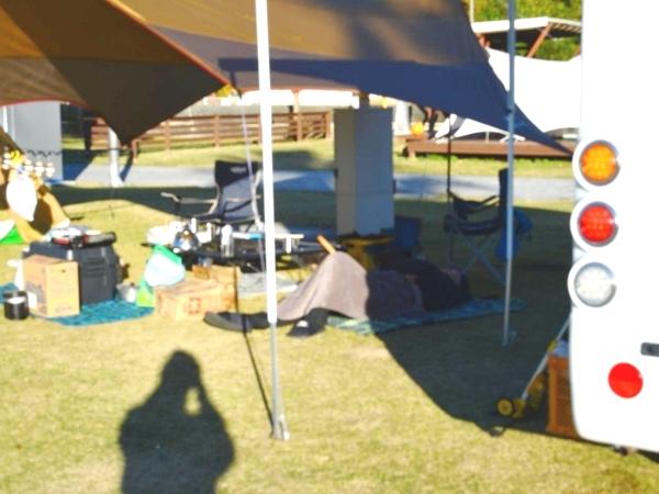 その日の夜は昨日よりも冷えるとの事だったので、やむなくテントを片付け、キャンピングカーの中で寝ることになりました。