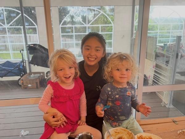 前のホストファミリーの子供と、今その家に住んでいて同じ学校に通っていた子と一緒に!