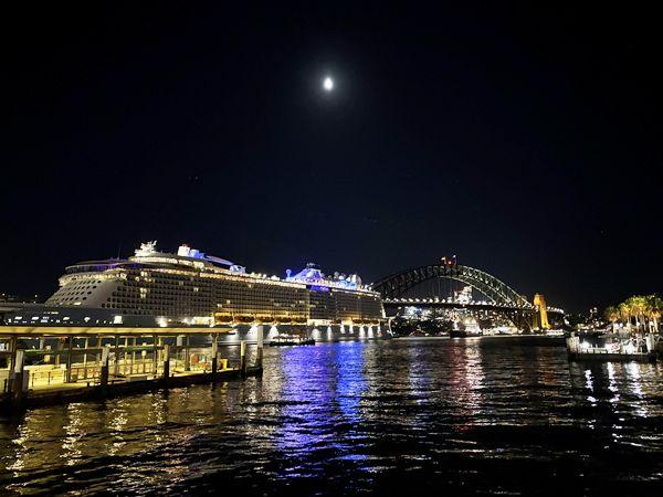 これは、1枚目の写真のSASUKEの右手側、オペラハウスの西側にある、シドニー・ハーバーブリッジとそのすぐそばに停泊していた豪華客船です。