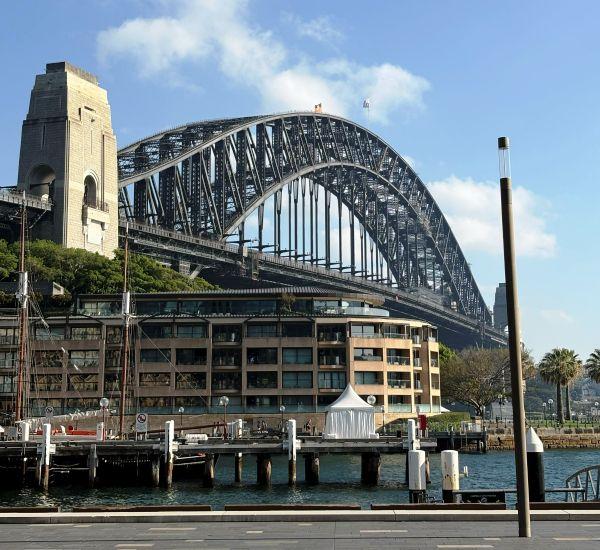 この、シドニー・ハーバーブリッジとは、世界最大級のシングルアーチ橋(これ書いてるときに知った)で、オペラハウスやオフィス街、繁華街などがあるシドニーの中心部と、閑静な住宅街のひろがるノースシドニーをつなぐ橋です。